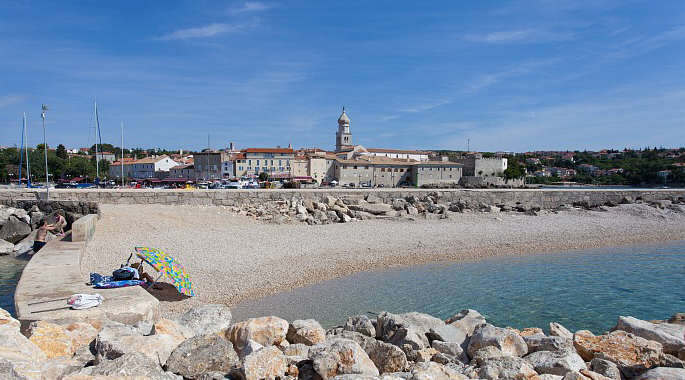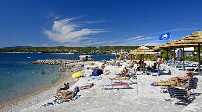 Na wyspie Krk znajduje sie wiele ładnych plaż z Baśka na czele, jedną z najpiękniejszych plaż w Chorwacji. Znajdują sie tu różnego rodzaje plaże od piasczystych, poprzez kamieniste, żwirowe, betonowe i skaliste.